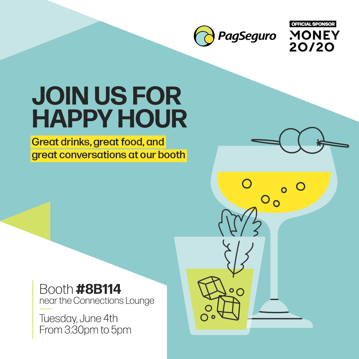 And to kick Money 20/20 off in style: join us for Happy Hour on the event’s first day, June 4th! From 3:30pm to 5pm, our booth will host great drinks, great food, and great conversations: